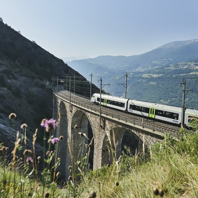 La ligne de montagne du Lötschberg fait partie des ouvrages les plus importants de l'histoire des chemins de fer suisses. Elle impressionne par son imposant viaduc sur la Kander et ses boucles de retournement autour du Felsenburg.